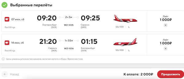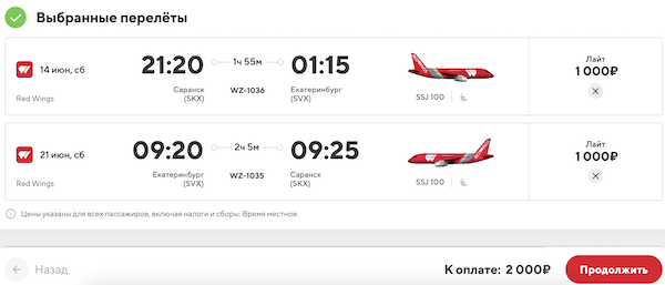 Билеты между Екатеринбургом и Саранском в июне 2.000 рублей туда-обратно.