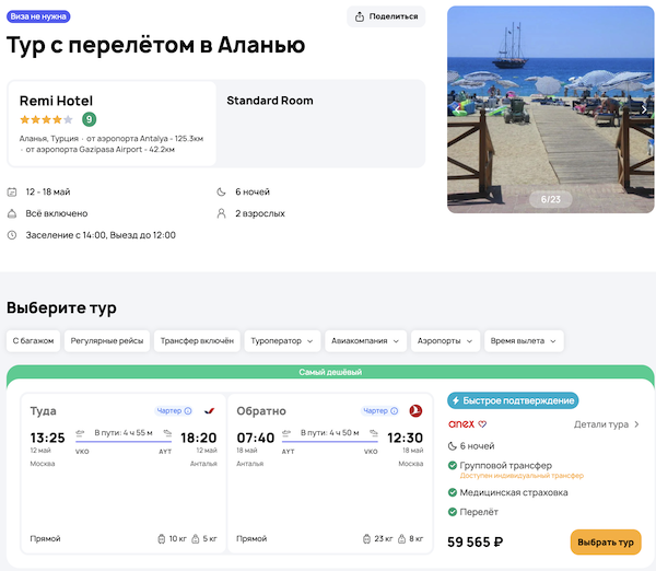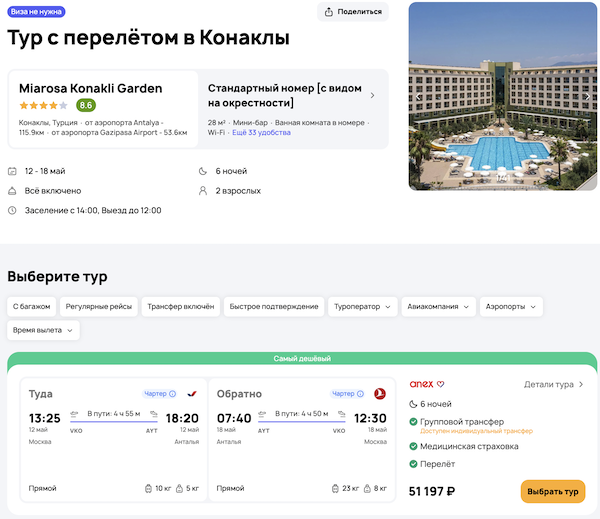 Стоимость в примерах указана за одного человека при условии поездки вдвоем, стоимость туров для одного человека можно посмотреть здесь или на страницах отелей.