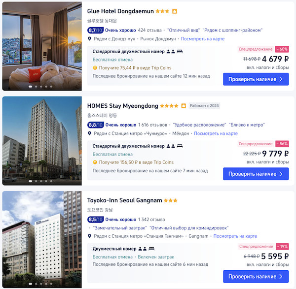 Как забронировать: перейдите по ссылкам в примерах или выберите другие даты на трип.ком