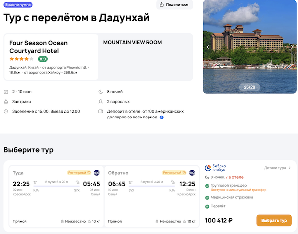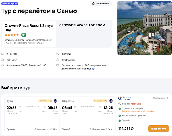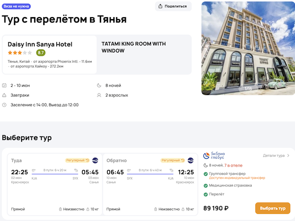 Горящие туры из Красноярска на остров Хайнань (Китай) от 44.600 рублей за человека.