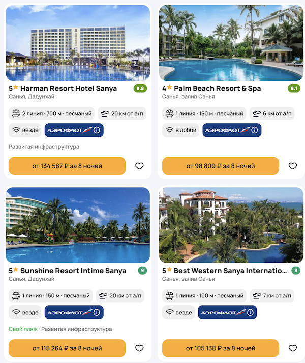— прямой перелет в Санью и обратно, Аэрофлот;
