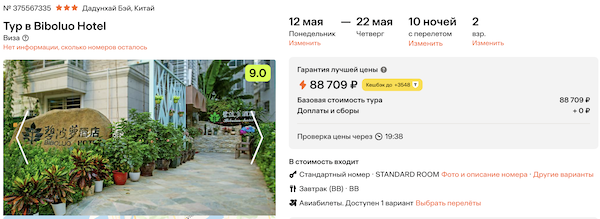 Biboluo Hotel 3* с завтраками 44.300 рублей за человека (88.700 рублей за двоих)