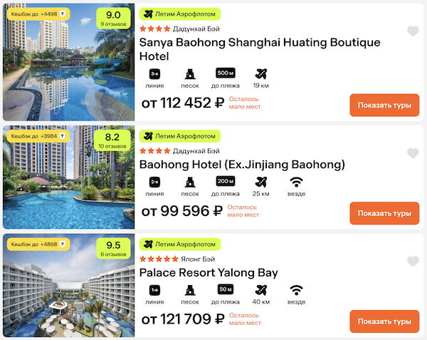 — прямой перелет в Санью и обратно, Аэрофлот;