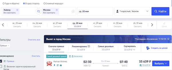 Обратно из Хайкоу в конце мая и начале июня от 33.600 рублей, минимальные цены на трип.ком