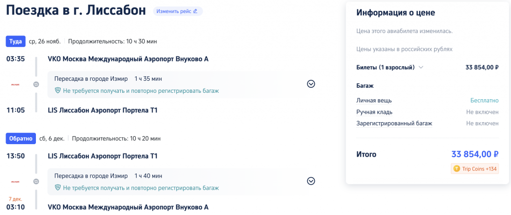 Рейсы авиакомпании Pegasus выполняются с короткой пересадкой в Измире.