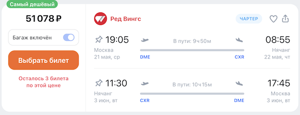 Горящие билеты на прямые чартерные рейсы из Москвы на Пхукет и в Нячанг от 39.400 рублей туда-обратно.