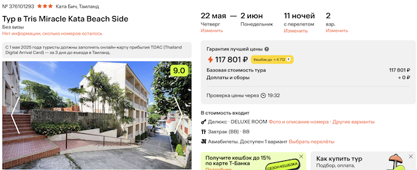 Tris Miracle Kata Beach Side 3* с завтраками 58.900 рублей за человека (117.800 рублей за двоих)