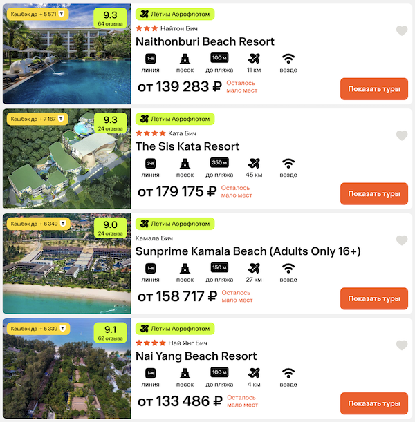— прямой перелет на Пхукет и обратно, Аэрофлот;