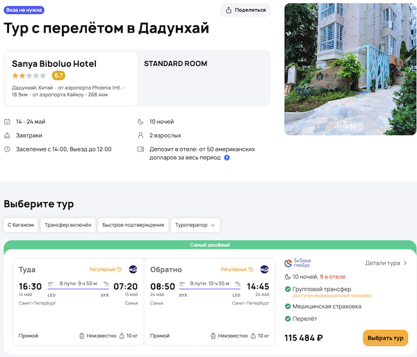 Туры из Санкт-Петербурга на остров Хайнань (Китай) от 57.700 рублей за человека.