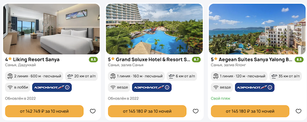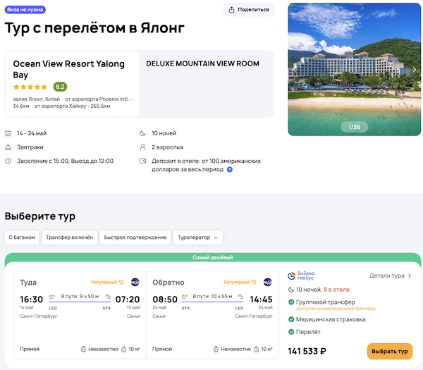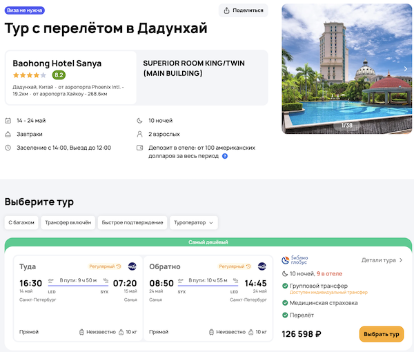 — прямой перелет в Санью и обратно, Аэрофлот;