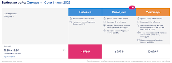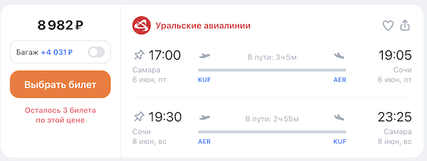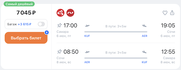 Самара — Сочи 1 июня