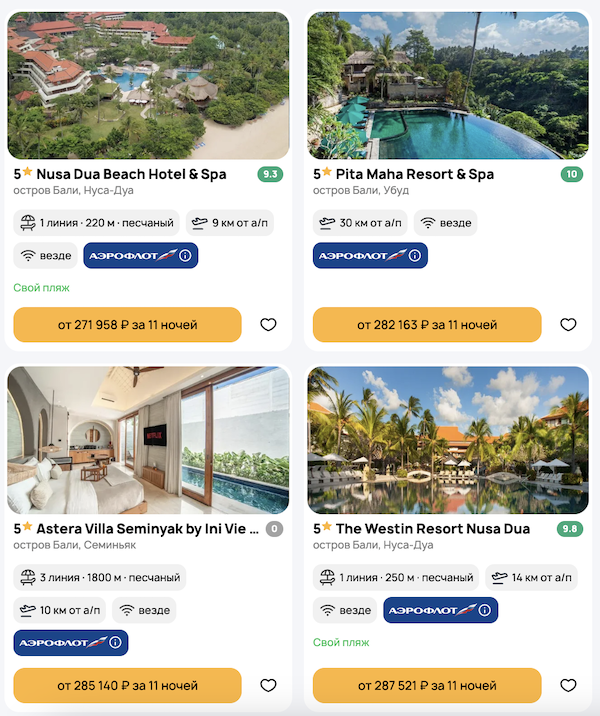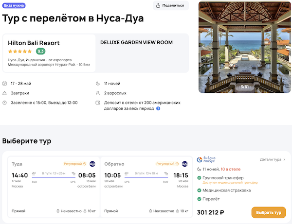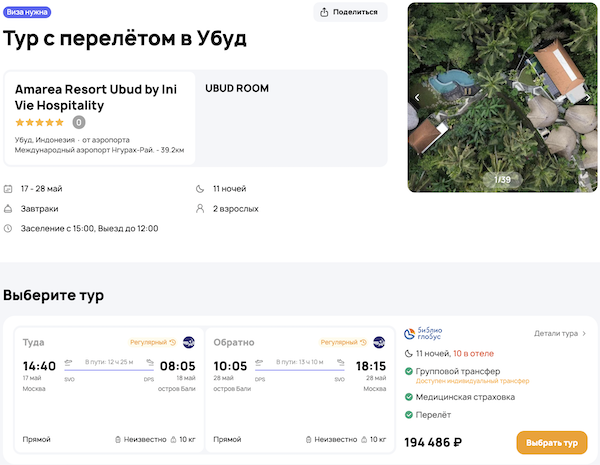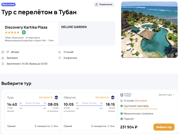 — прямой перелет в Денпасар и обратно, Аэрофлот;