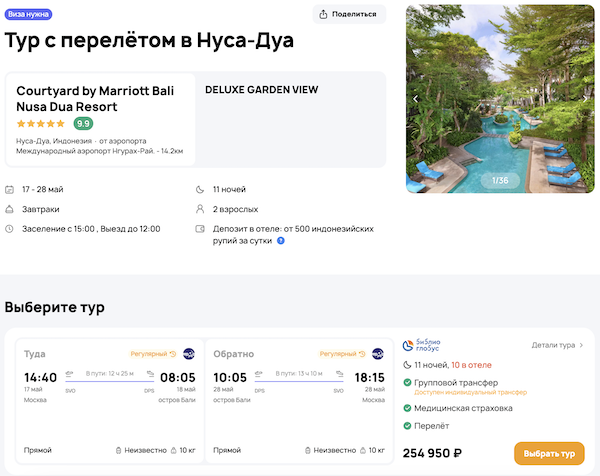 Courtyard By Marriott Bali Nusa Dua 5* с завтраками 127.500 рублей за человека (255.000 рублей за двоих)