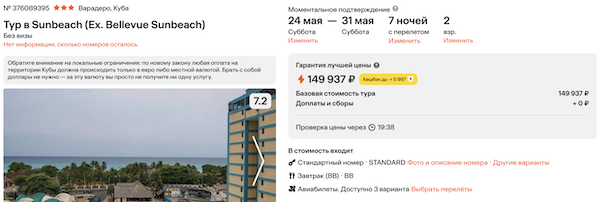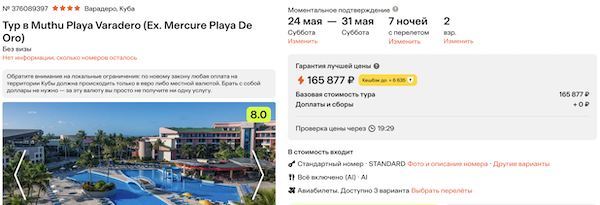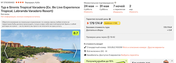 Горящие туры из Москвы на Кубу 74.900 рублей за человека.