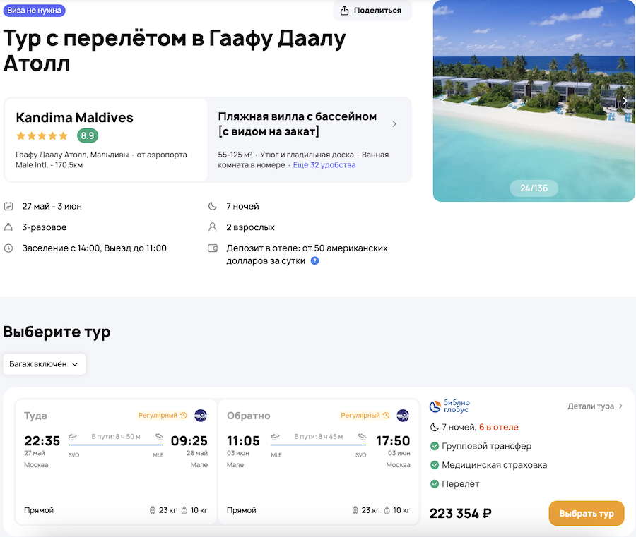 — прямой перелет в Мале и обратно, Аэрофлот;