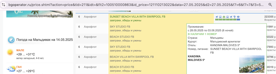 Только 1 номер по такой цене (скриншот с сайта туроператора):