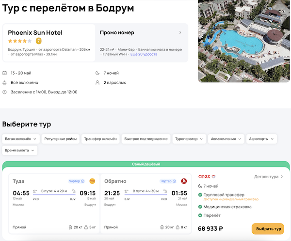 Стоимость в примерах указана за одного человека при условии поездки вдвоем, стоимость туров для одного человека можно посмотреть здесь или на страницах отелей.