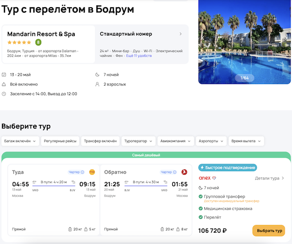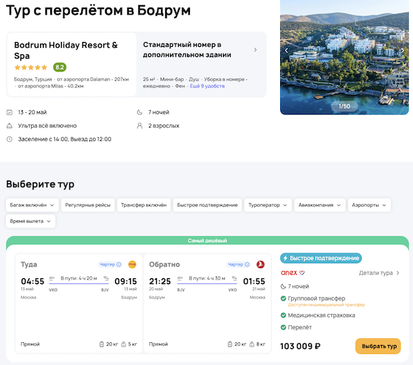 Горящие туры из Москвы в Бодрум от 34.400 рублей за человека, все включено.