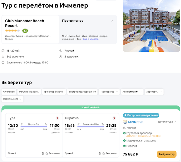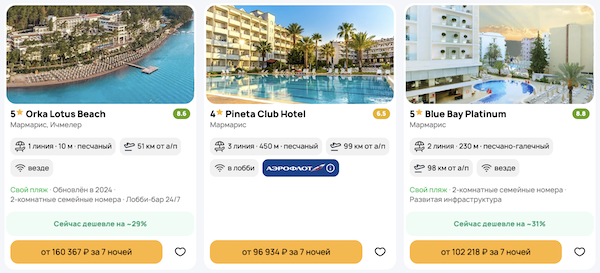 Стоимость в примерах указана за одного человека при условии поездки вдвоем. Стоимость туров для 1 человека можно посмотреть здесь или на странице отелей, изменив количество туристов.