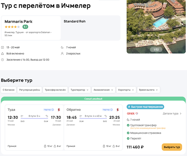 Marmaris Park 4* 55.700 рублей за человека (111.500 рублей за двоих)