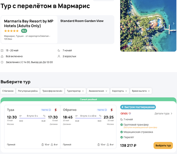 Туры из Москвы в Мармарис на неделю в мае от 36.200 рублей за человека, все включено.