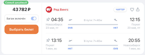 Из Новосибирска на Пхукет с 23 мая по 1 июня, с 12 по 22 мая