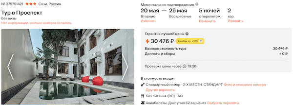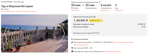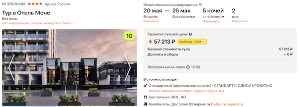 Стоимость в примерах указана за одного человека при условии поездки вдвоем, стоимость туров для одного человека можно посмотреть здесь или на страницах отелей.