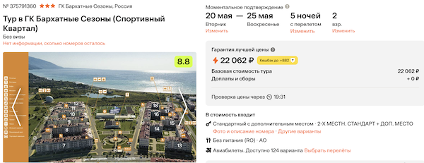 Бархатные Сезоны 11.000 рублей за человека (22.100 рублей за двоих)