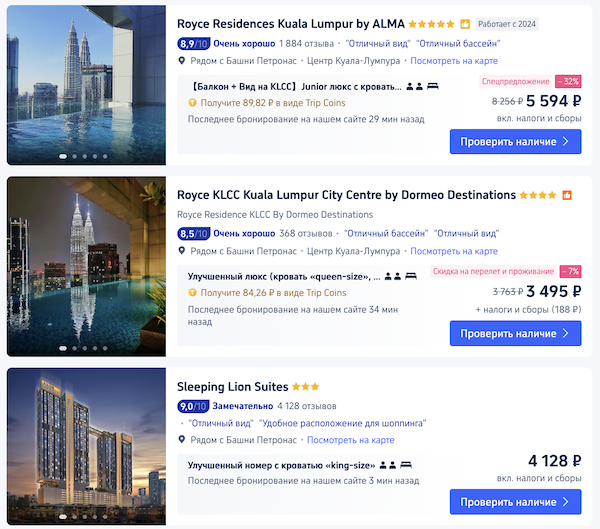 Как забронировать: перейдите по ссылкам в примерах или выберите другие даты на трип.ком