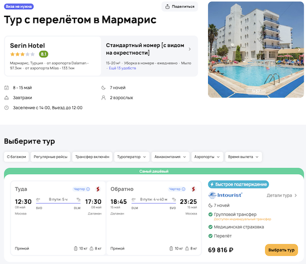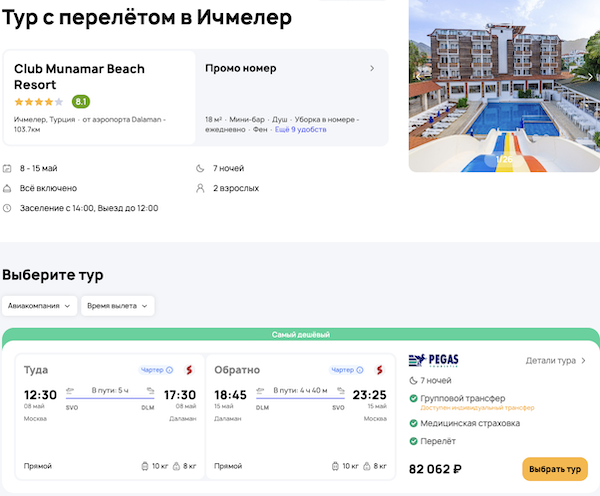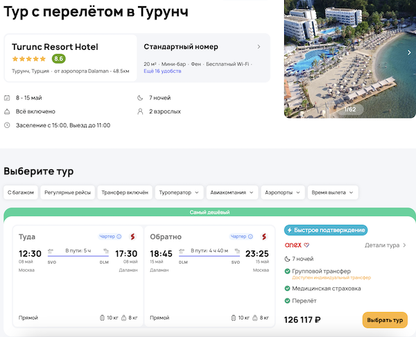 — прямой перелет в Даламан и обратно, авиакомпания Southwind;