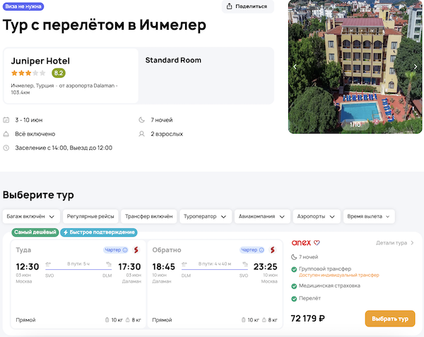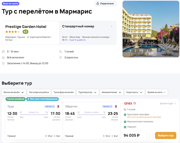 Стоимость в примерах указана за одного человека при условии поездки вдвоем. Стоимость туров для 1 человека можно посмотреть здесь или на странице отелей, изменив количество туристов.