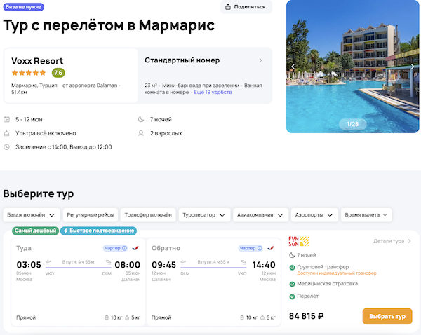 Voxx Resort 5* 42.400 рублей за человека (84.800 рублей за двоих)