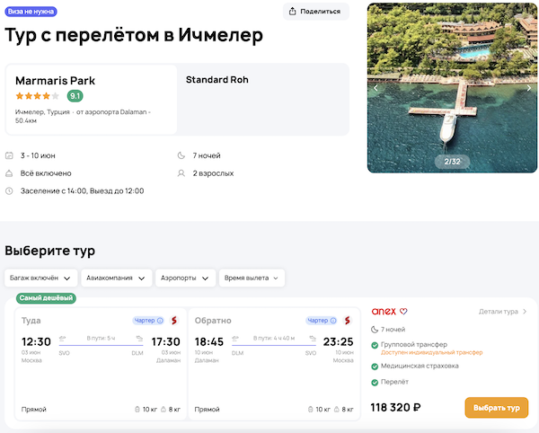 Туры из Москвы в Мармарис на неделю в июне от 36.100 рублей за человека, все включено.
