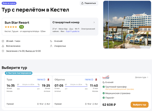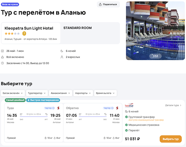 Стоимость в примерах указана за одного человека при условии поездки вдвоем, стоимость туров для одного человека можно посмотреть здесь или на страницах отелей.
