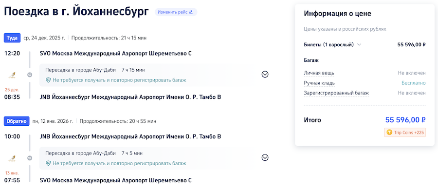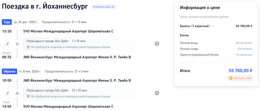 Новый год в Южной Африке: билеты из Москвы от 55.600 рублей туда-обратно.