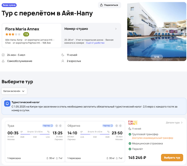 Flora Maria Annex 3* 72.600 рублей за человека (145.200 рублей за двоих)