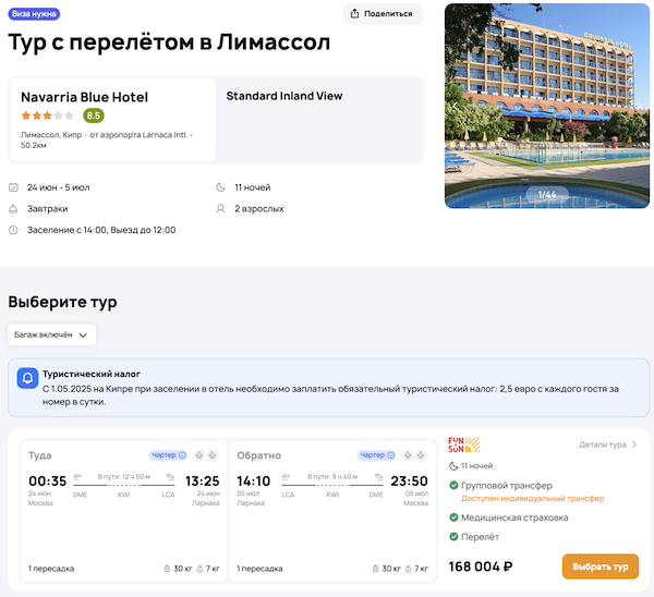 Туры из Москвы на Кипр летом от 59.200 рублей за человека.