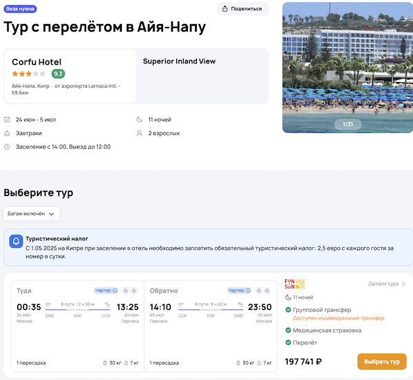 В туры включено:
