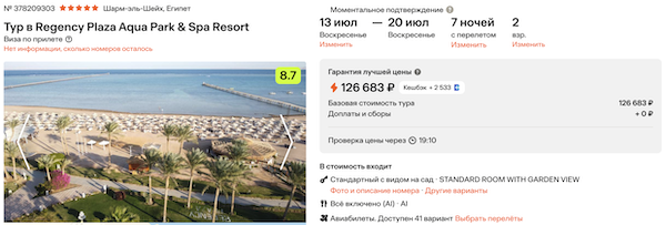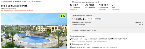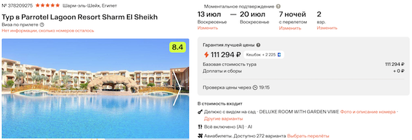 Стоимость в примерах указана за одного человека при условии поездки вдвоем, стоимость туров для одного человека можно посмотреть здесь или на страницах отелей.