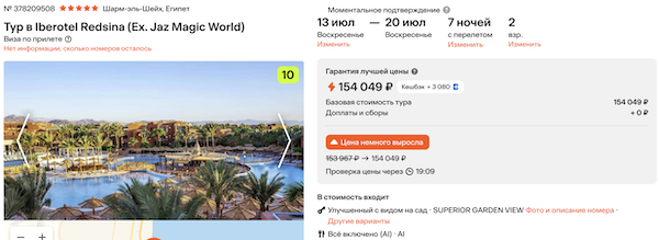 Iberotel Redsina 77.000 рублей за человека (154.000 рублей за двоих)