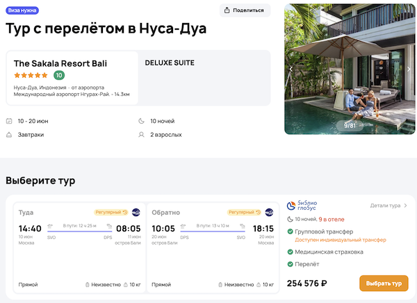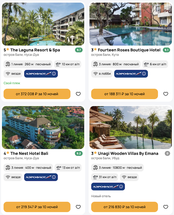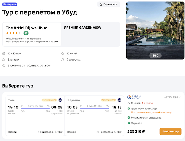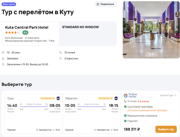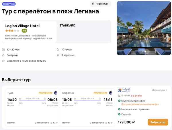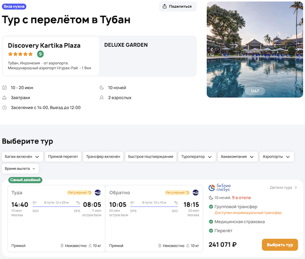 — прямой перелет в Денпасар и обратно, Аэрофлот;