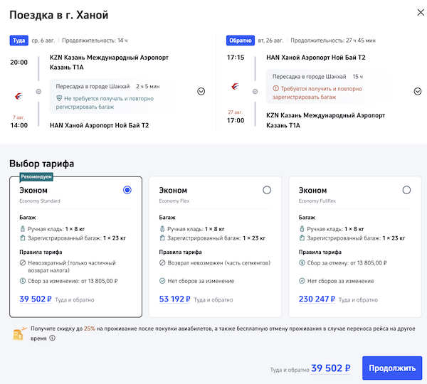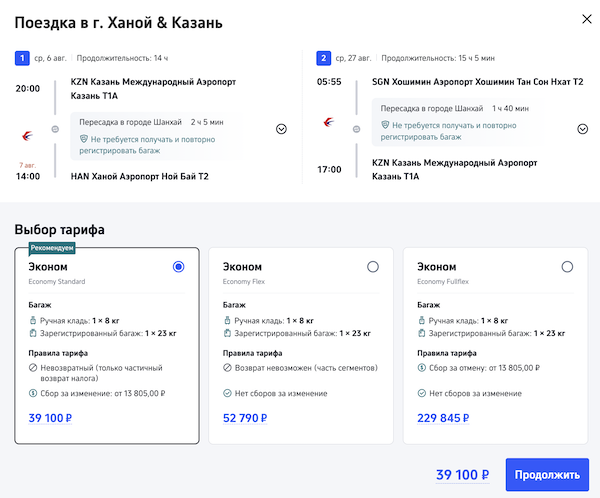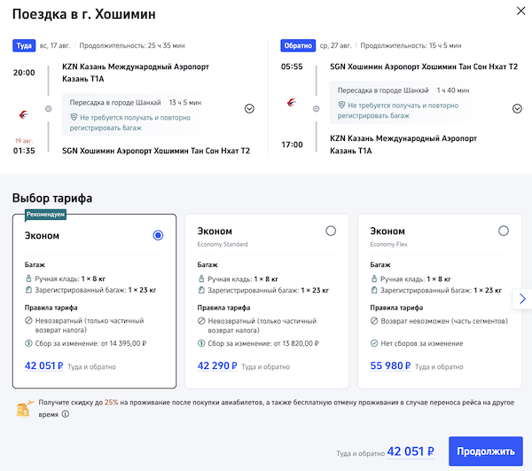 Составной маршрут: Казань — Ханой; Хошимин — Казань