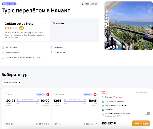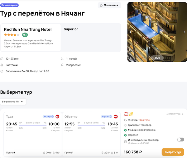 Горящие туры из Казани во Вьетнам от 76.700 рублей за человека.