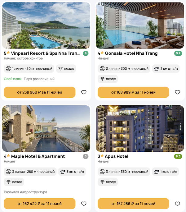 Стоимость в примерах указана за одного человека при условии поездки вдвоем. Стоимость туров для 1 человека можно посмотреть здесь или на странице отелей, изменив количество туристов.