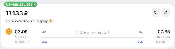 Горящие билеты на прямые чартерные рейсы из Москвы в Бодрум и Даламан от 13.200 рублей туда-обратно.