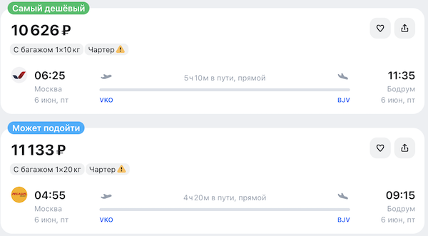 Как забронировать: купить отдельные билеты в каждую сторону, перейдите по ссылкам в примерах.