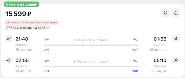 Грузия в июне: билеты из Москвы в Кутаиси от 15.600 рублей туда-обратно.