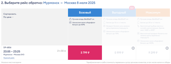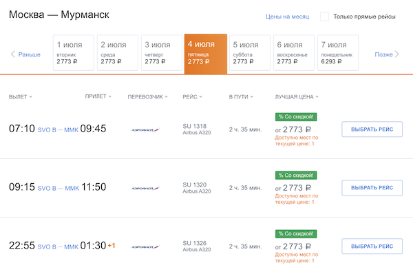 Из Москвы в Мурманск в июле от 5.800 рублей туда-обратно.