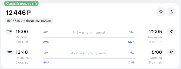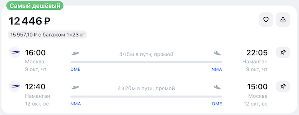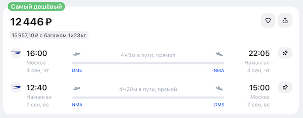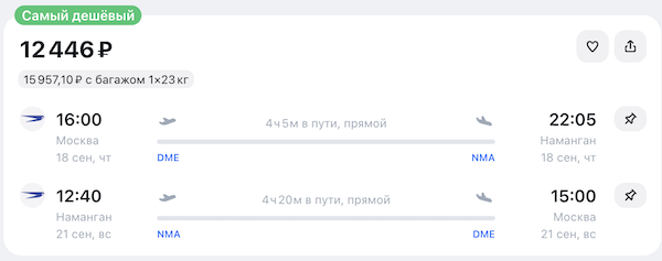 Как забронировать: перейдите по ссылкам в примерах или выберите другие даты на авиасейлс.