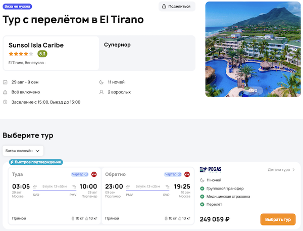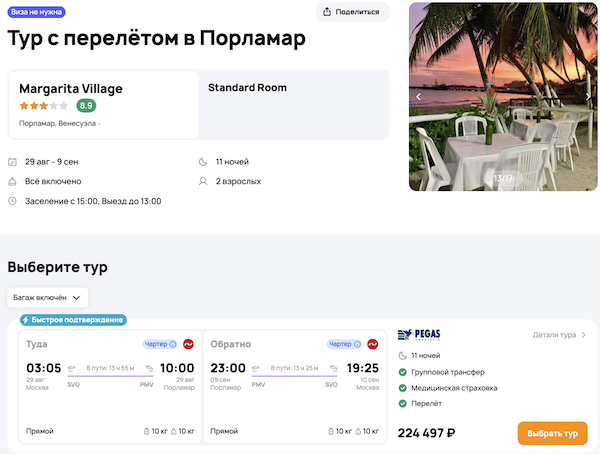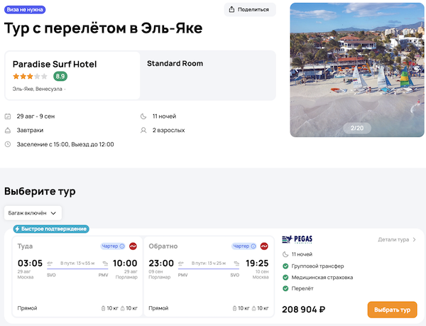 Туры из Москвы в Венесуэлу от 104.400 рублей за человека.